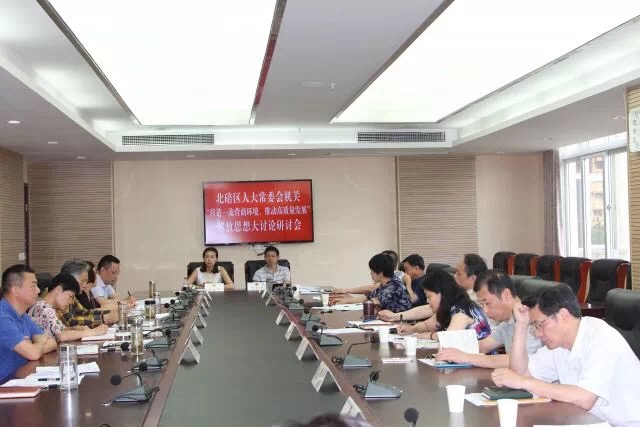 5月16日,北碚区人大常委会机关开展营造良好民营经济发展环境解放思想大讨论。常委会领导班子及各专工委负责人参加了此次讨论。
